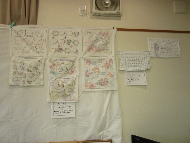 習字、貼り絵、刺し子も展示しました。