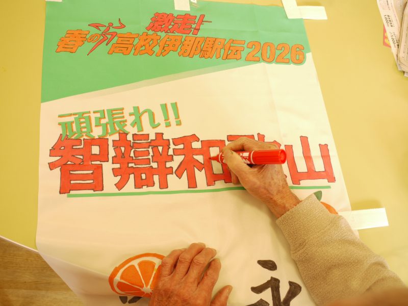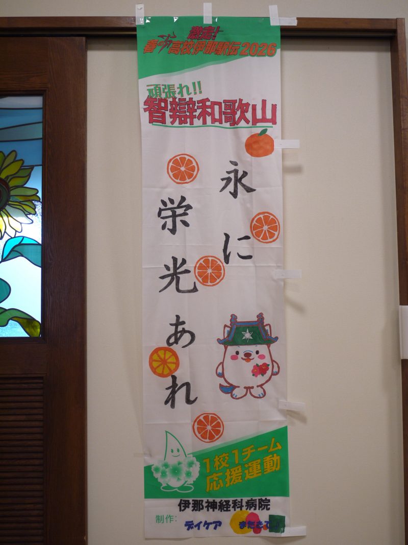 少しずつ春の訪れを感じる今日この頃。 今年も伊那駅伝の季節が近づいてきました。 またきて♪では、毎年、高校生ランナーを応援するために、 ステキな応援旗を作成しています。 今年は智辯和歌山、和歌山市のゆるキャラ、わかのすけと共に応援します‼