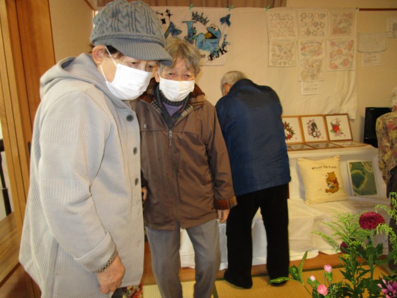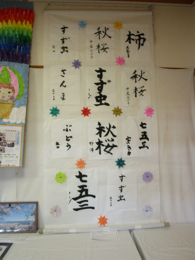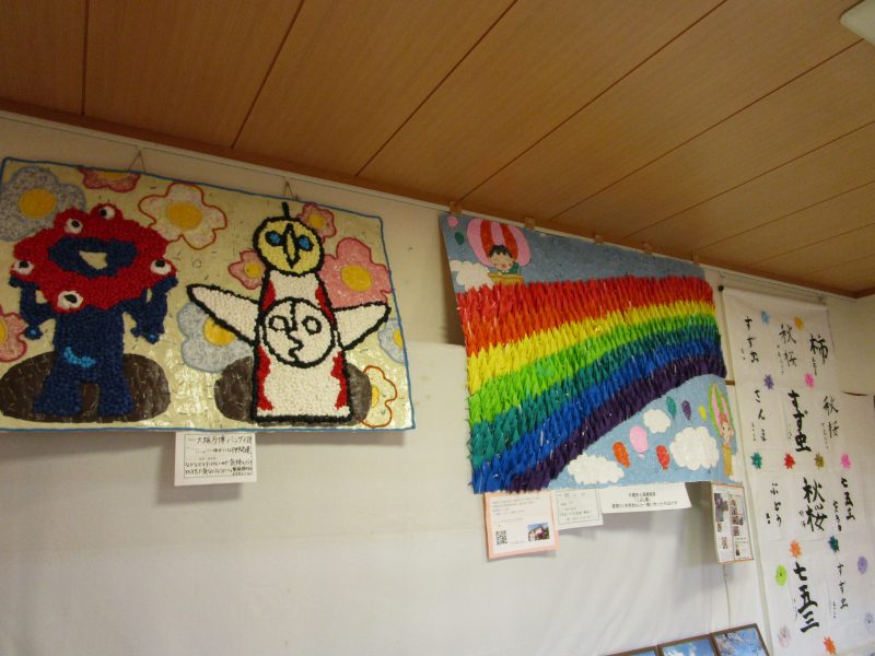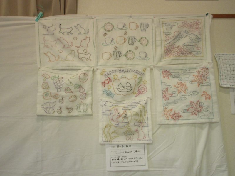 習字、貼り絵、刺し子も展示しました。