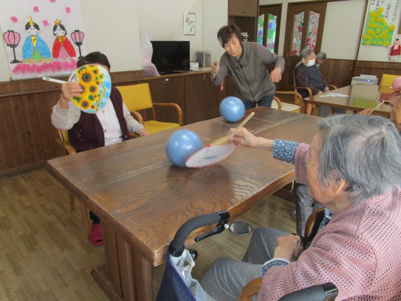 うちわをラケットのようにして卓球のようです。