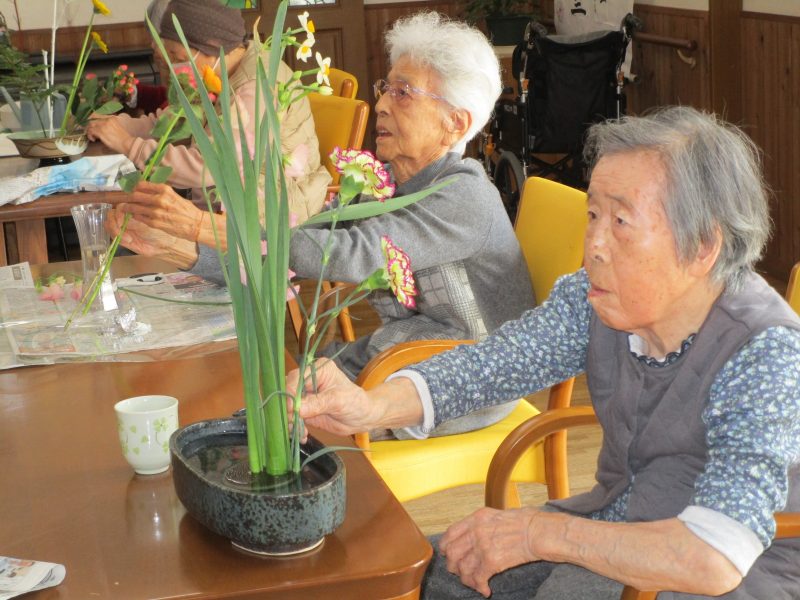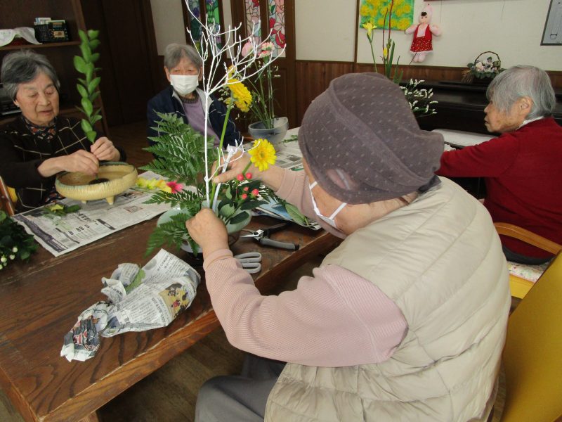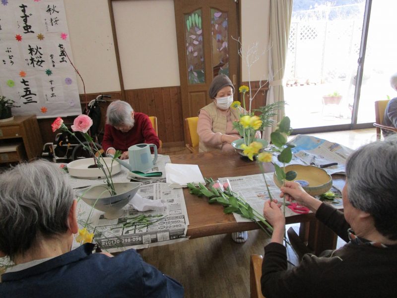 自分の好きな花を手に取って思い思いに活けていただいています。