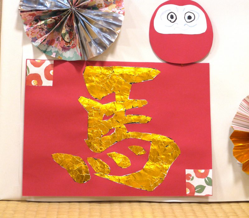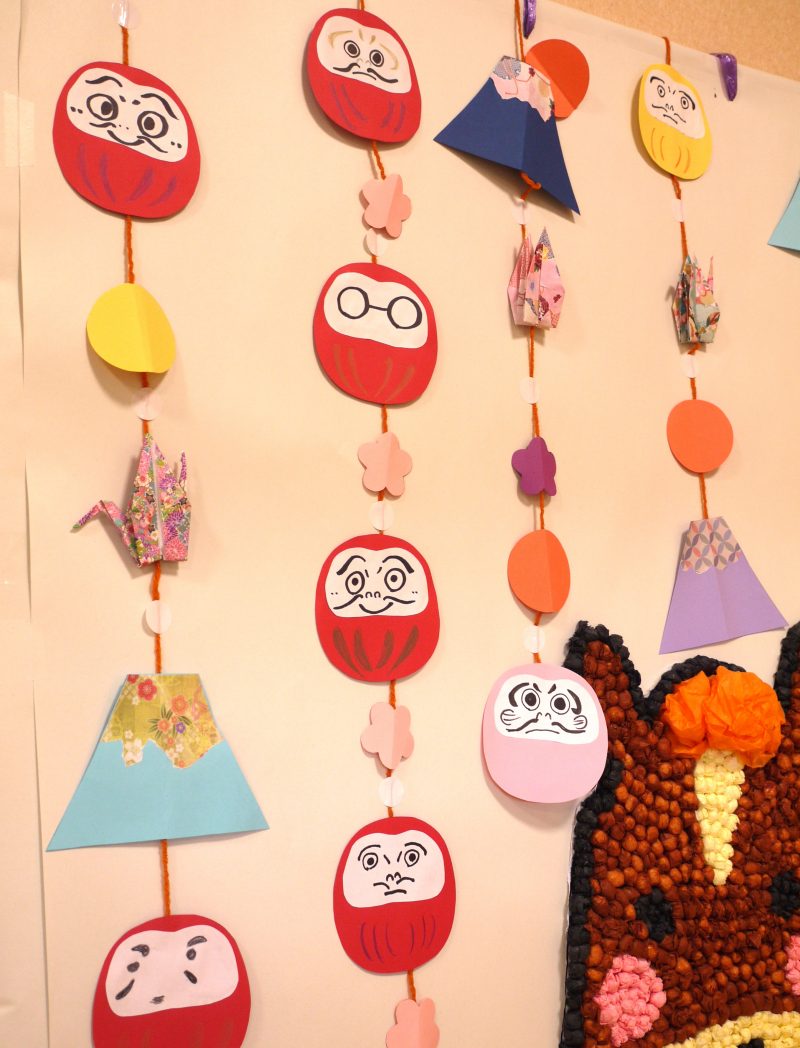 上には富士山・梅・鶴・だるま・日の出 をつるし飾り風にしてみました。
